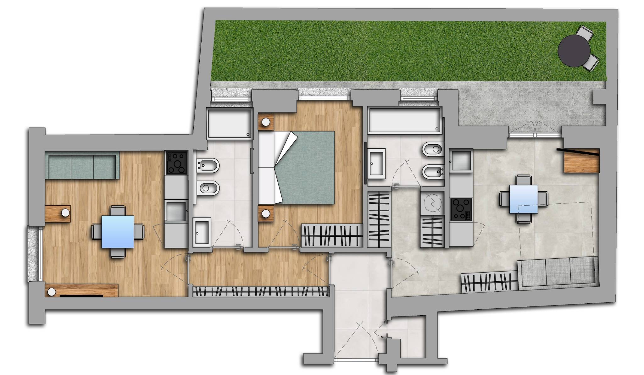 - Piccolo giardino privato che garantisce privacy totale agli affacci delle camere